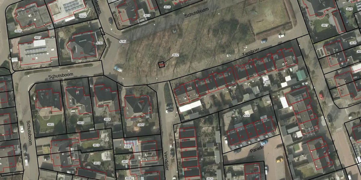 Het perceel waarop Tamboer 2 staat heeft een oppervlakte van 3181 m². Dit is een zeer groot perceel. De perceeloppervlakte wordt geregistreerd door het Kadaster. Gedetailleerde informatie over de maten van dit perceel kunt u vinden in het rapport Kadastrale kaart met maatvoering van Tamboer 2.