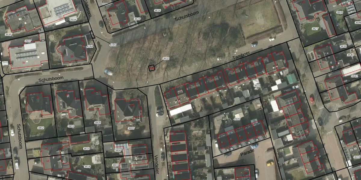Het perceel waarop Tamboer 4 staat heeft een oppervlakte van 3181 m². Dit is een zeer groot perceel. De perceeloppervlakte wordt geregistreerd door het Kadaster. Gedetailleerde informatie over de maten van dit perceel kunt u vinden in het rapport Kadastrale kaart met maatvoering van Tamboer 4.