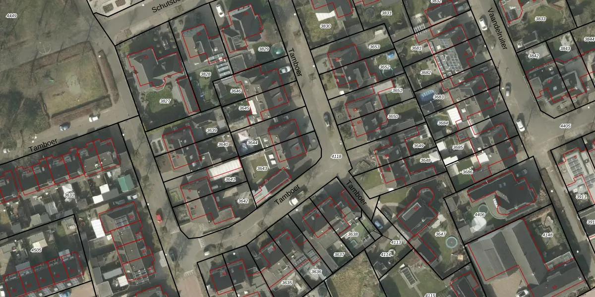 Het perceel waarop Tamboer 9 staat heeft een oppervlakte van 370 m². Dit is een groot perceel. De perceeloppervlakte wordt geregistreerd door het Kadaster. Gedetailleerde informatie over de maten van dit perceel kunt u vinden in het rapport Kadastrale kaart met maatvoering van Tamboer 9.