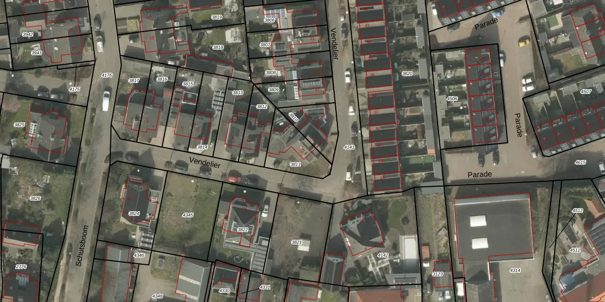 Gebruik de zoekbalk of klik op een perceel voor informatie over de adressen binnen dit perceel.