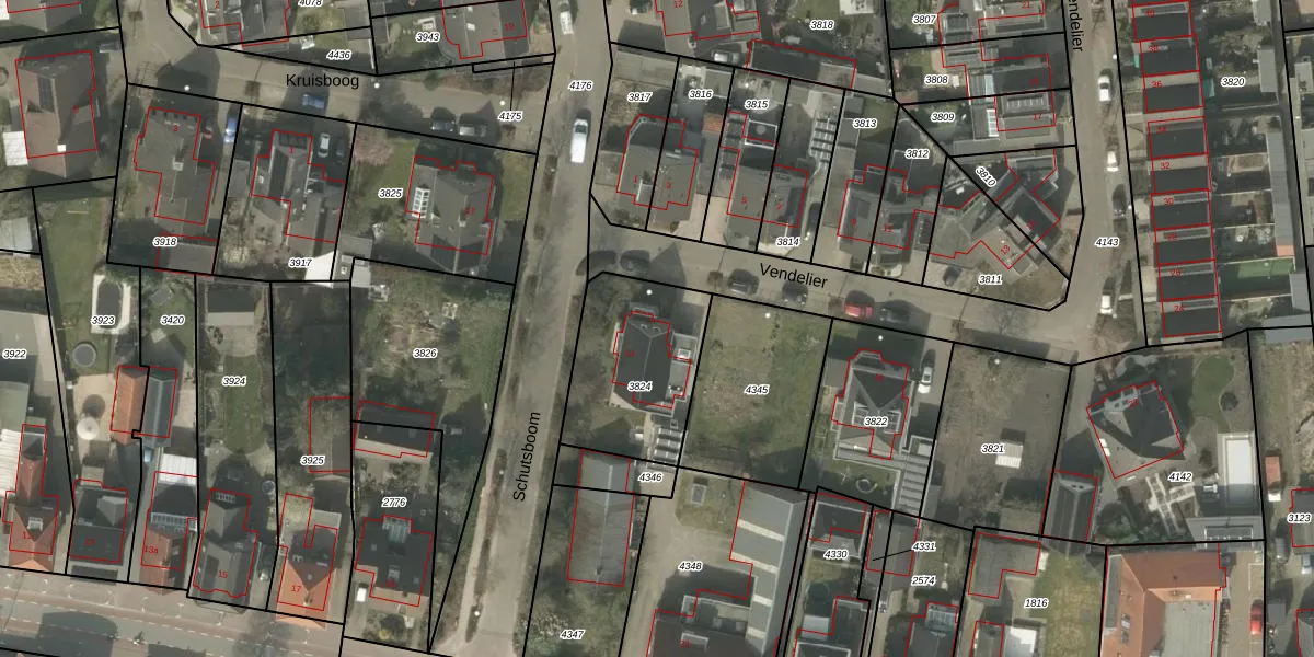 Het perceel waarop Vendelier 14 staat heeft een oppervlakte van 500 m². Dit is een groot perceel. De perceeloppervlakte wordt geregistreerd door het Kadaster. Gedetailleerde informatie over de maten van dit perceel kunt u vinden in het rapport Kadastrale kaart met maatvoering van Vendelier 14.
