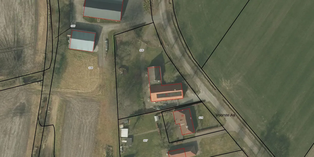 Het perceel waarop Voorste Aa 10 staat heeft een oppervlakte van 2090 m². Dit is een zeer groot perceel. De perceeloppervlakte wordt geregistreerd door het Kadaster. Gedetailleerde informatie over de maten van dit perceel kunt u vinden in het rapport Kadastrale kaart met maatvoering van Voorste Aa 10.