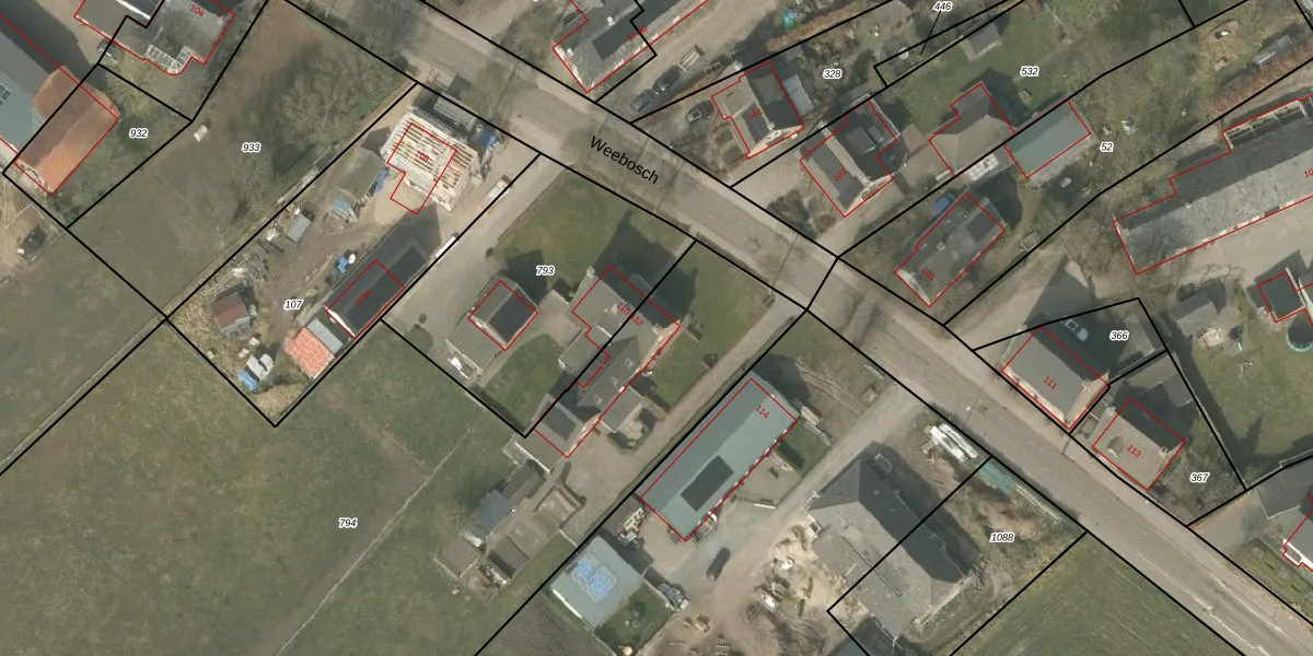 Het perceel waarop Weebosch 112 staat heeft een oppervlakte van 7391 m². Dit is een zeer groot perceel. De perceeloppervlakte wordt geregistreerd door het Kadaster. Gedetailleerde informatie over de maten van dit perceel kunt u vinden in het rapport Kadastrale kaart met maatvoering van Weebosch 112.