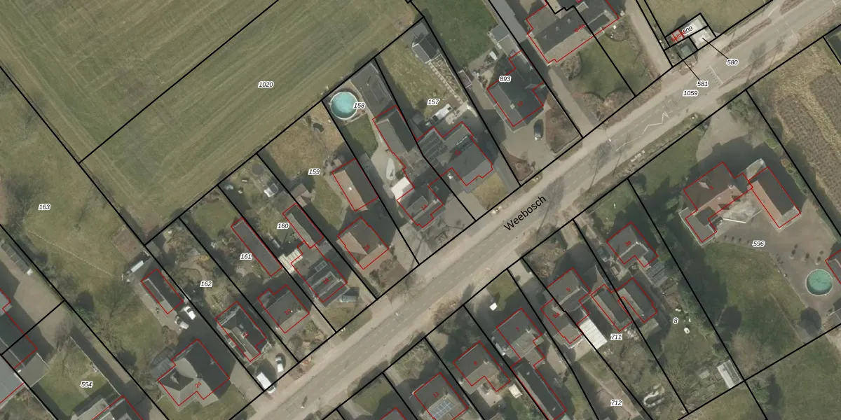Het perceel waarop Weebosch 14 staat heeft een oppervlakte van 690 m². Dit is een groot perceel. De perceeloppervlakte wordt geregistreerd door het Kadaster. Gedetailleerde informatie over de maten van dit perceel kunt u vinden in het rapport Kadastrale kaart met maatvoering van Weebosch 14.