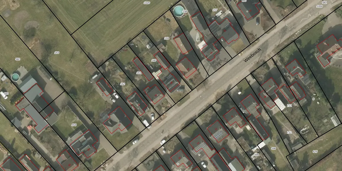 Het perceel waarop Weebosch 18 staat heeft een oppervlakte van 550 m². Dit is een groot perceel. De perceeloppervlakte wordt geregistreerd door het Kadaster. Gedetailleerde informatie over de maten van dit perceel kunt u vinden in het rapport Kadastrale kaart met maatvoering van Weebosch 18.