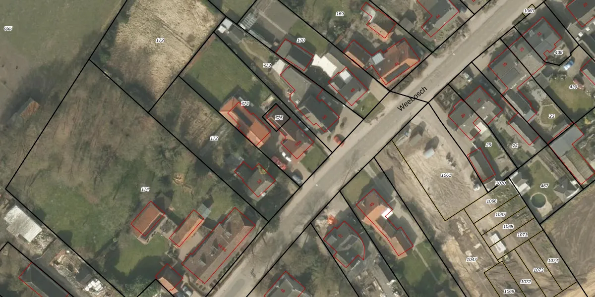 Het perceel waarop Weebosch 50-a staat heeft een oppervlakte van 936 m². Dit is een groot perceel. De perceeloppervlakte wordt geregistreerd door het Kadaster. Gedetailleerde informatie over de maten van dit perceel kunt u vinden in het rapport Kadastrale kaart met maatvoering van Weebosch 50-a.