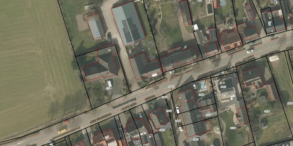 Het perceel waarop Weebosserweg 18 staat heeft een oppervlakte van 4620 m². Dit is een zeer groot perceel. De perceeloppervlakte wordt geregistreerd door het Kadaster. Gedetailleerde informatie over de maten van dit perceel kunt u vinden in het rapport Kadastrale kaart met maatvoering van Weebosserweg 18.