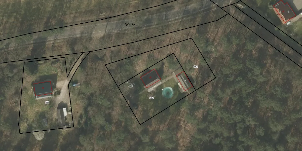 Het perceel waarop Witrijt 19 staat heeft een oppervlakte van 1250 m². Dit is een zeer groot perceel. De perceeloppervlakte wordt geregistreerd door het Kadaster. Gedetailleerde informatie over de maten van dit perceel kunt u vinden in het rapport Kadastrale kaart met maatvoering van Witrijt 19.