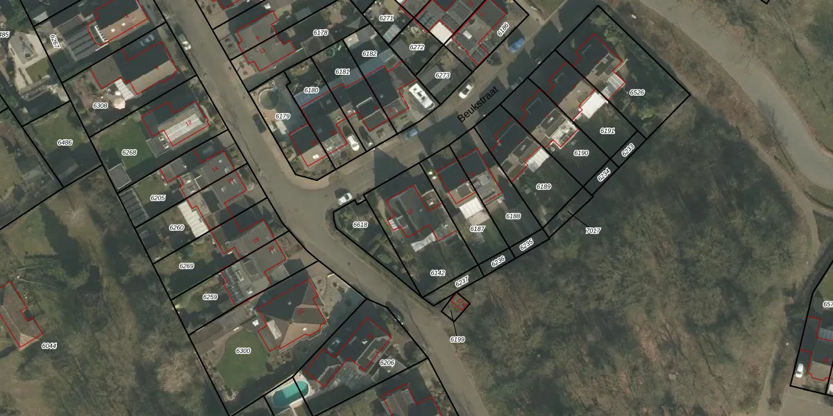 Beukstraat 13 is gelegen op kadastraal perceel BGN02D6142. Deze kadastrale aanduiding is uniek en wordt gebruikt door het Kadaster om eigendomsrechten en andere zakelijke rechten vast te leggen. Het perceel maakt onderdeel uit van de kadastrale gemeente Bergen Limburg.