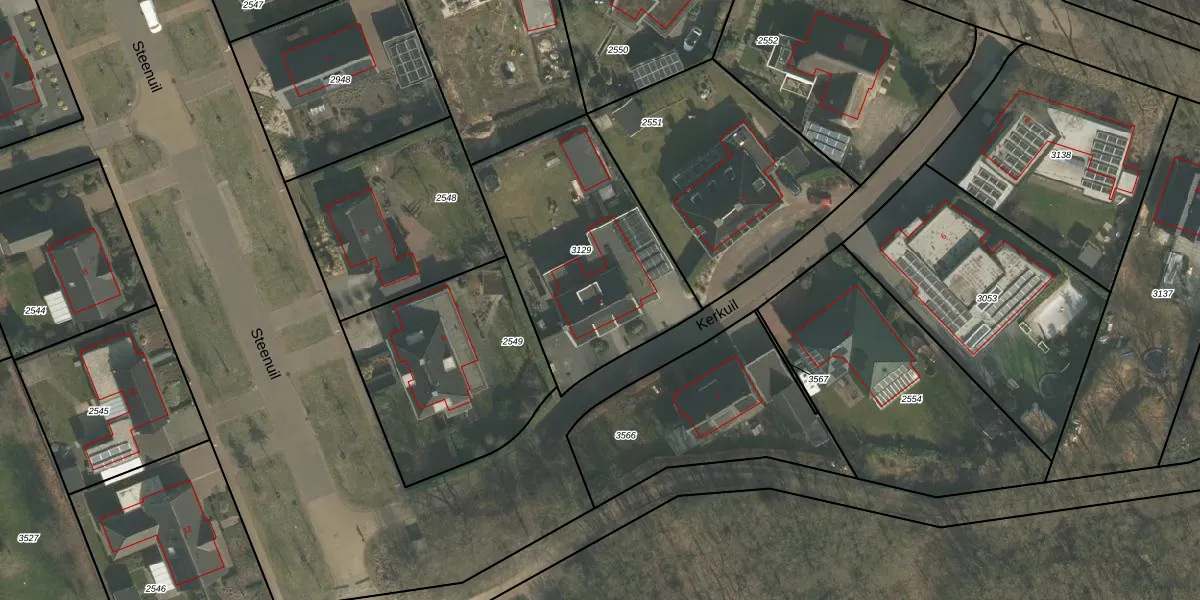 Het perceel waarop Kerkuil 1 staat heeft een oppervlakte van 955 m². Dit is een groot perceel. De perceeloppervlakte wordt geregistreerd door het Kadaster. Gedetailleerde informatie over de maten van dit perceel kunt u vinden in het rapport Kadastrale kaart met maatvoering van Kerkuil 1.