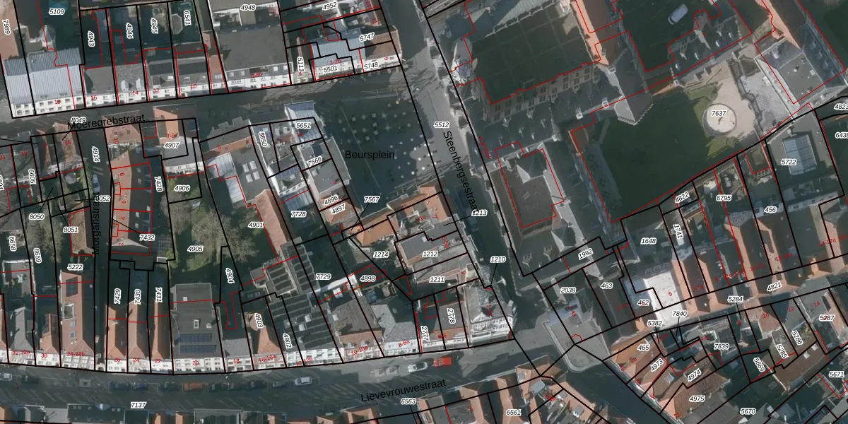 Beursplein 1 is gelegen op kadastraal perceel BGN01G1213. Deze kadastrale aanduiding is uniek en wordt gebruikt door het Kadaster om eigendomsrechten en andere zakelijke rechten vast te leggen. Het perceel maakt onderdeel uit van de kadastrale gemeente Bergen op Zoom.