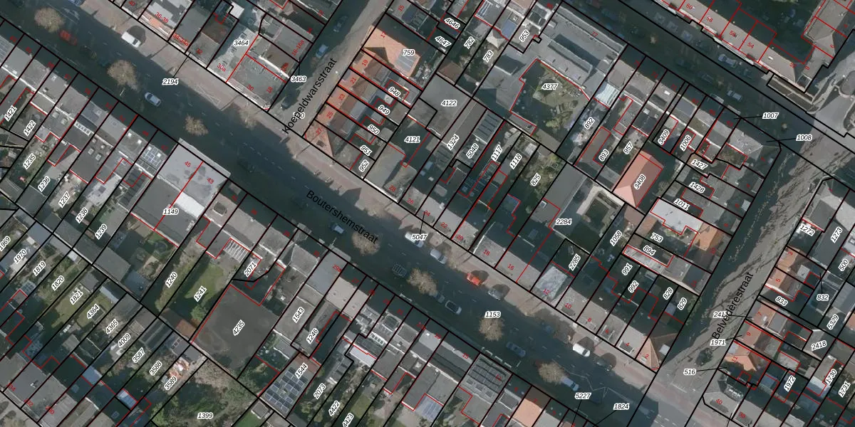 Boutershemstraat 24 is gelegen op kadastraal perceel BGN01H5047. Deze kadastrale aanduiding is uniek en wordt gebruikt door het Kadaster om eigendomsrechten en andere zakelijke rechten vast te leggen. Het perceel maakt onderdeel uit van de kadastrale gemeente Bergen op Zoom.