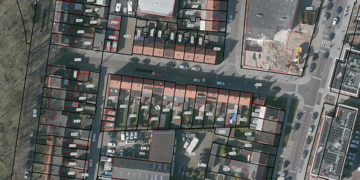 Eikstraat 14 is gelegen op kadastraal perceel BGN01D4211. Deze kadastrale aanduiding is uniek en wordt gebruikt door het Kadaster om eigendomsrechten en andere zakelijke rechten vast te leggen. Het perceel maakt onderdeel uit van de kadastrale gemeente Bergen op Zoom.