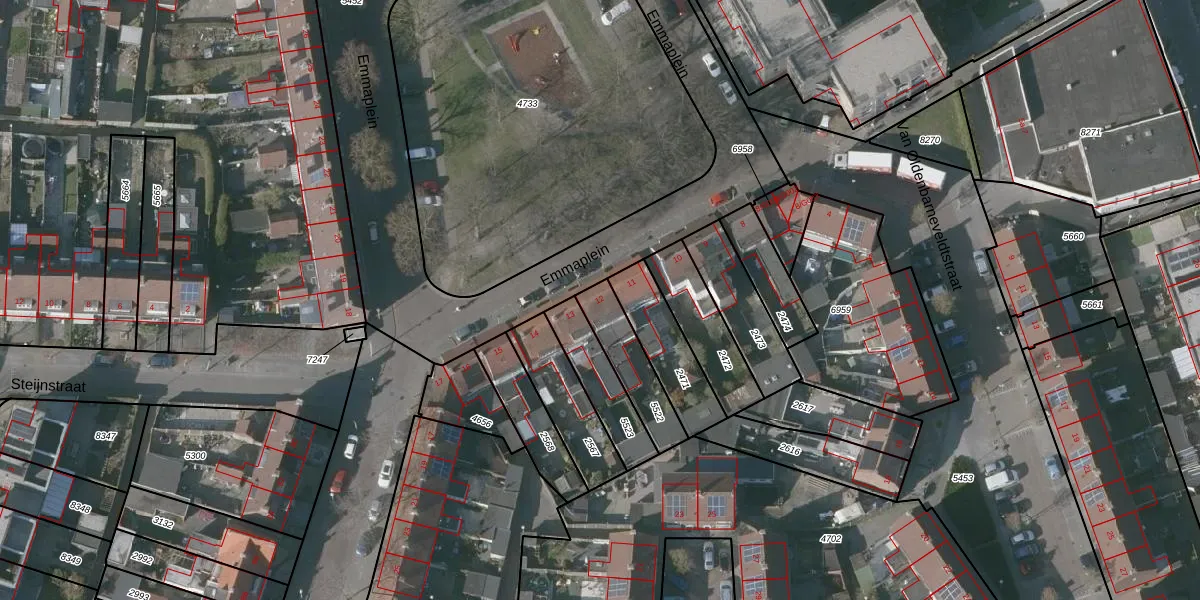 Het perceel waarop Emmaplein 12 staat heeft een oppervlakte van 174 m². Dit is een middelgroot perceel. De perceeloppervlakte wordt geregistreerd door het Kadaster. Gedetailleerde informatie over de maten van dit perceel kunt u vinden in het rapport Kadastrale kaart met maatvoering van Emmaplein 12.