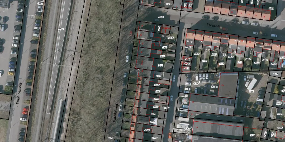 Gebruik de zoekbalk of klik op een perceel voor informatie over de adressen binnen dit perceel.