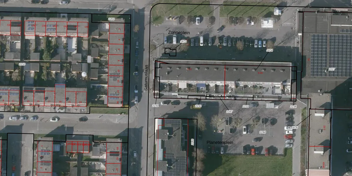 Het perceel waarop Zonneplein 21 staat heeft een oppervlakte van 1437 m². Dit is een zeer groot perceel. De perceeloppervlakte wordt geregistreerd door het Kadaster. Gedetailleerde informatie over de maten van dit perceel kunt u vinden in het rapport Kadastrale kaart met maatvoering van Zonneplein 21.