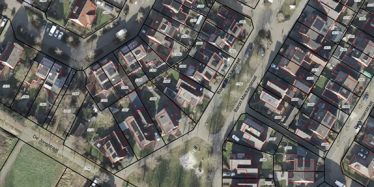 Het perceel waarop Baron Mackaystraat 21 staat heeft een oppervlakte van 476 m². Dit is een groot perceel. De perceeloppervlakte wordt geregistreerd door het Kadaster. Gedetailleerde informatie over de maten van dit perceel kunt u vinden in het rapport Kadastrale kaart met maatvoering van Baron Mackaystraat 21.