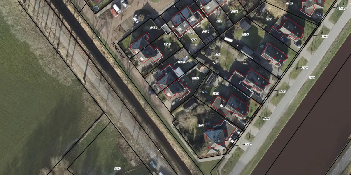 Het perceel waarop Bolsstraat 2 staat heeft een oppervlakte van 368 m². Dit is een groot perceel. De perceeloppervlakte wordt geregistreerd door het Kadaster. Gedetailleerde informatie over de maten van dit perceel kunt u vinden in het rapport Kadastrale kaart met maatvoering van Bolsstraat 2.