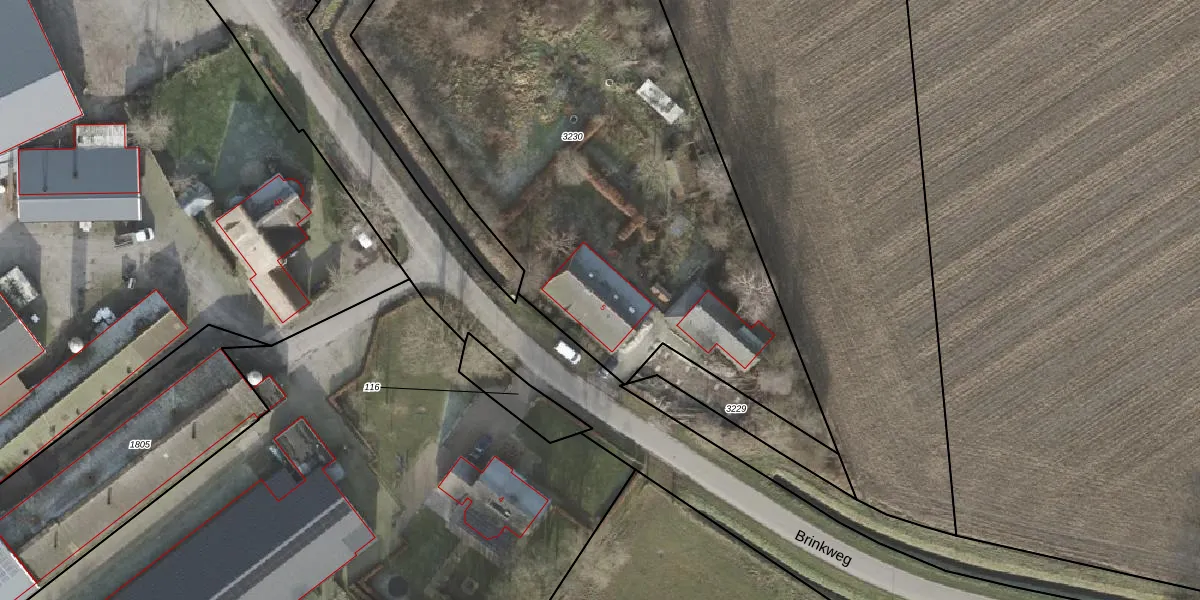 Het perceel waarop Brinkweg 5 staat heeft een oppervlakte van 3953 m². Dit is een zeer groot perceel. De perceeloppervlakte wordt geregistreerd door het Kadaster. Gedetailleerde informatie over de maten van dit perceel kunt u vinden in het rapport Kadastrale kaart met maatvoering van Brinkweg 5.