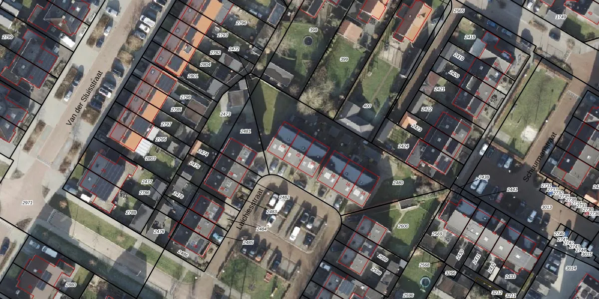 Het perceel waarop Luichiesstraat 22 staat heeft een oppervlakte van 1332 m². Dit is een zeer groot perceel. De perceeloppervlakte wordt geregistreerd door het Kadaster. Gedetailleerde informatie over de maten van dit perceel kunt u vinden in het rapport Kadastrale kaart met maatvoering van Luichiesstraat 22.