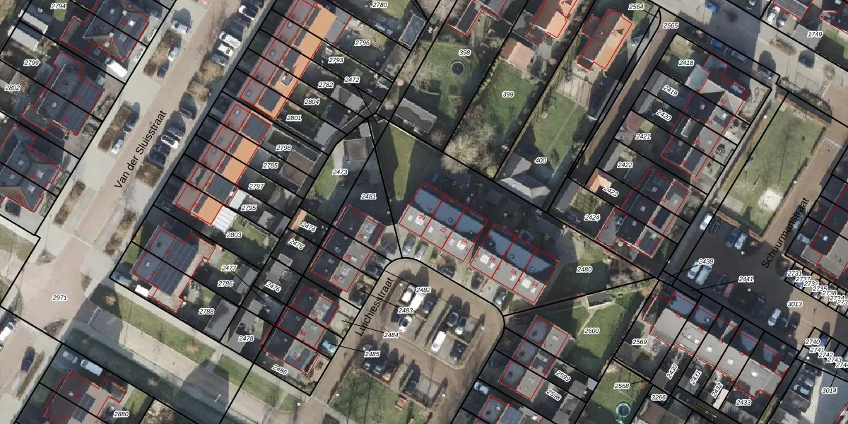 Het perceel waarop Luichiesstraat 24 staat heeft een oppervlakte van 1332 m². Dit is een zeer groot perceel. De perceeloppervlakte wordt geregistreerd door het Kadaster. Gedetailleerde informatie over de maten van dit perceel kunt u vinden in het rapport Kadastrale kaart met maatvoering van Luichiesstraat 24.