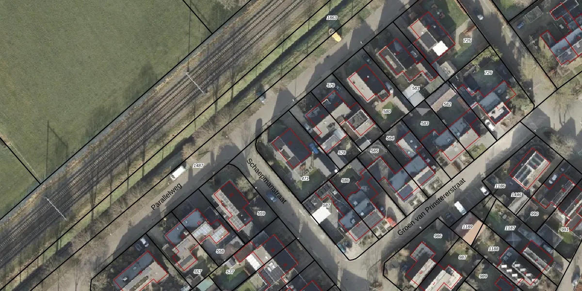 Het perceel waarop Parallelweg 15 staat heeft een oppervlakte van 459 m². Dit is een groot perceel. De perceeloppervlakte wordt geregistreerd door het Kadaster. Gedetailleerde informatie over de maten van dit perceel kunt u vinden in het rapport Kadastrale kaart met maatvoering van Parallelweg 15.