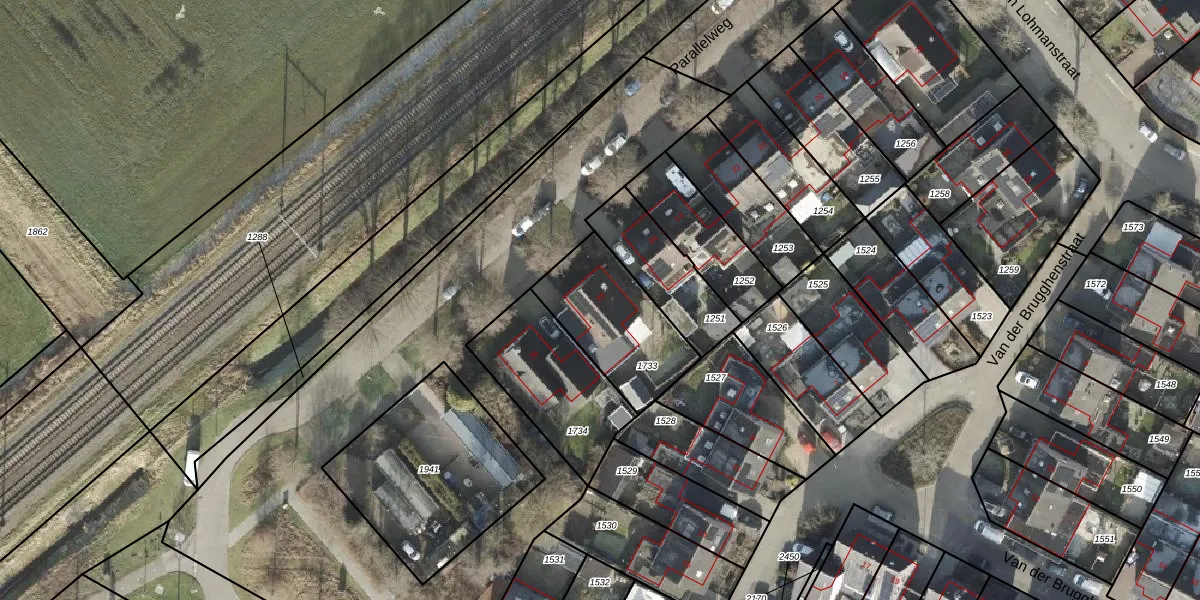 Het perceel waarop Parallelweg 25 staat heeft een oppervlakte van 395 m². Dit is een groot perceel. De perceeloppervlakte wordt geregistreerd door het Kadaster. Gedetailleerde informatie over de maten van dit perceel kunt u vinden in het rapport Kadastrale kaart met maatvoering van Parallelweg 25.