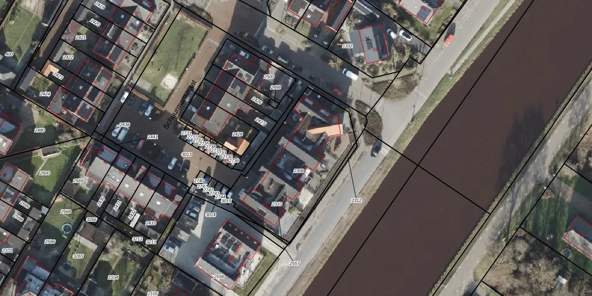 Het perceel waarop Schuurmanstraat 22 staat heeft een oppervlakte van 1163 m². Dit is een zeer groot perceel. De perceeloppervlakte wordt geregistreerd door het Kadaster. Gedetailleerde informatie over de maten van dit perceel kunt u vinden in het rapport Kadastrale kaart met maatvoering van Schuurmanstraat 22.