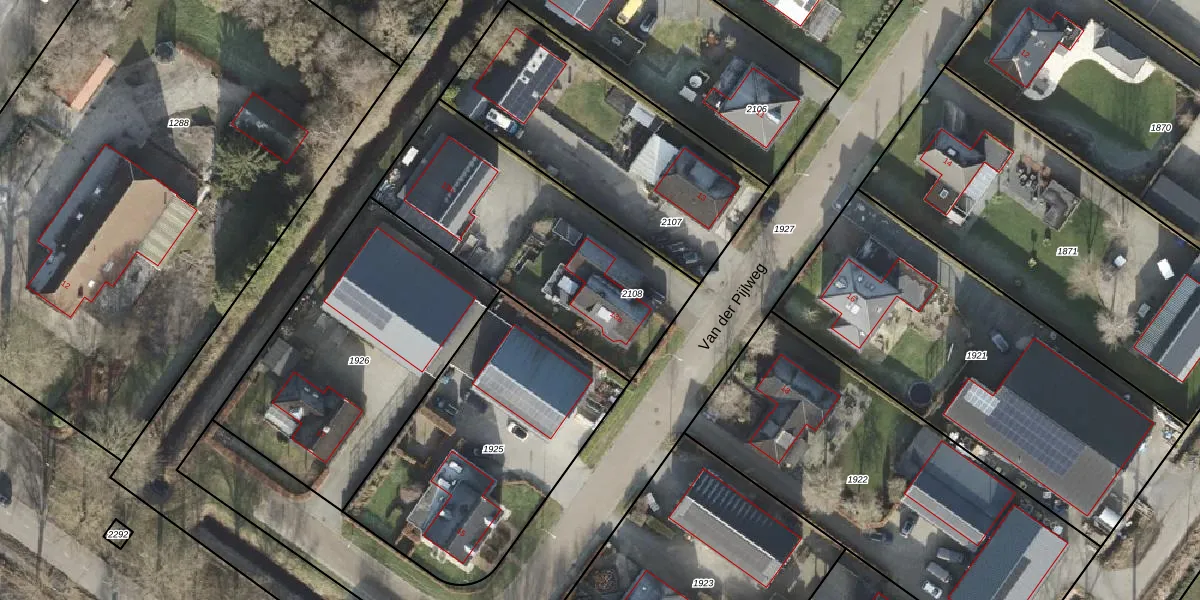 Het perceel waarop Van der Pijlweg 13-a staat heeft een oppervlakte van 1069 m². Dit is een zeer groot perceel. De perceeloppervlakte wordt geregistreerd door het Kadaster. Gedetailleerde informatie over de maten van dit perceel kunt u vinden in het rapport Kadastrale kaart met maatvoering van Van der Pijlweg 13-a.