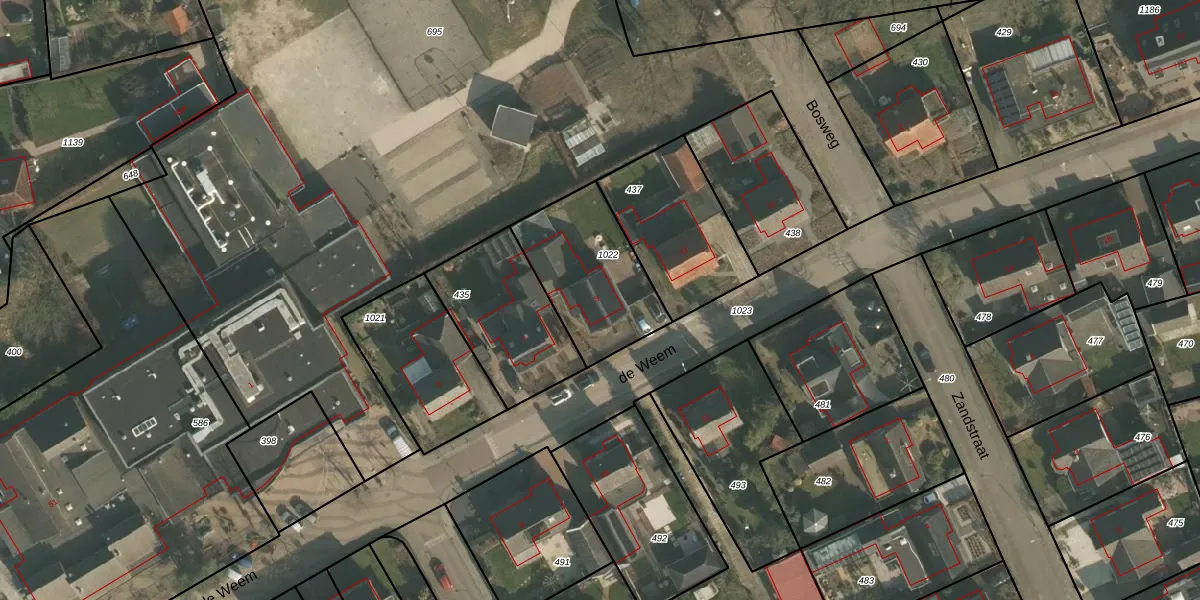 Het perceel waarop de Weem 9 staat heeft een oppervlakte van 436 m². Dit is een groot perceel. De perceeloppervlakte wordt geregistreerd door het Kadaster. Gedetailleerde informatie over de maten van dit perceel kunt u vinden in het rapport Kadastrale kaart met maatvoering van de Weem 9.