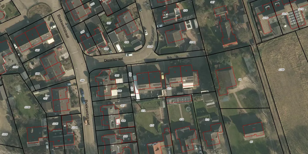 Het perceel waarop Distelstraat 4 staat heeft een oppervlakte van 1182 m². Dit is een zeer groot perceel. De perceeloppervlakte wordt geregistreerd door het Kadaster. Gedetailleerde informatie over de maten van dit perceel kunt u vinden in het rapport Kadastrale kaart met maatvoering van Distelstraat 4.