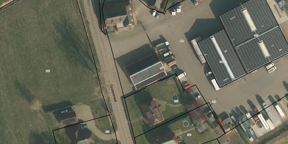 Het perceel waarop Grotestraat 36-A staat heeft een oppervlakte van 8282 m². Dit is een zeer groot perceel. De perceeloppervlakte wordt geregistreerd door het Kadaster. Gedetailleerde informatie over de maten van dit perceel kunt u vinden in het rapport Kadastrale kaart met maatvoering van Grotestraat 36-A.