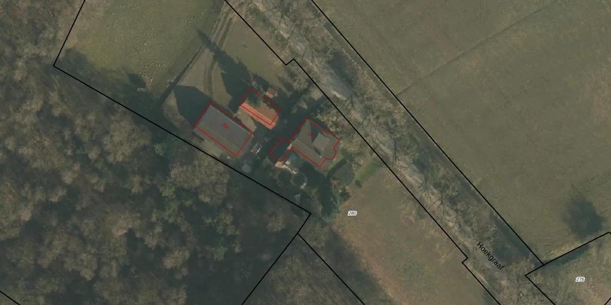 Het perceel waarop Hoekgraaf 15 staat heeft een oppervlakte van 8350 m². Dit is een zeer groot perceel. De perceeloppervlakte wordt geregistreerd door het Kadaster. Gedetailleerde informatie over de maten van dit perceel kunt u vinden in het rapport Kadastrale kaart met maatvoering van Hoekgraaf 15.