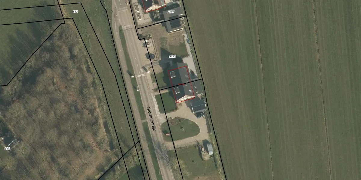 Het perceel waarop Stompendijk 7-B staat heeft een oppervlakte van 2405 m². Dit is een zeer groot perceel. De perceeloppervlakte wordt geregistreerd door het Kadaster. Gedetailleerde informatie over de maten van dit perceel kunt u vinden in het rapport Kadastrale kaart met maatvoering van Stompendijk 7-B.