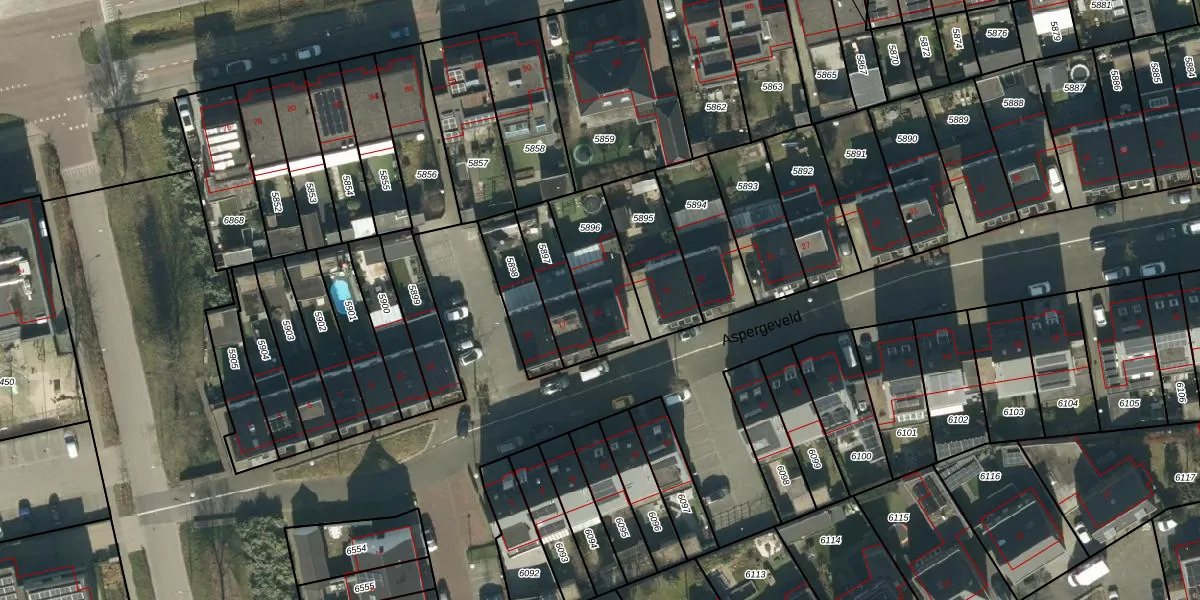 Aspergeveld 19 is gelegen op kadastraal perceel BHM00B5896. Deze kadastrale aanduiding is uniek en wordt gebruikt door het Kadaster om eigendomsrechten en andere zakelijke rechten vast te leggen. Het perceel maakt onderdeel uit van de kadastrale gemeente Berghem.