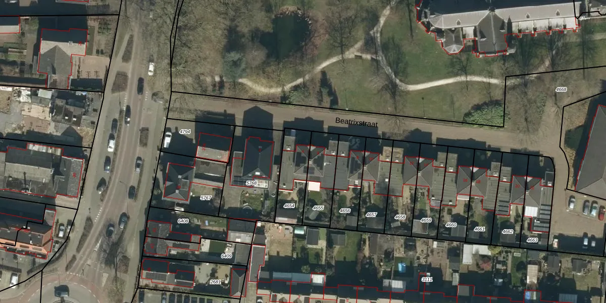 Beatrixstraat 4 is gelegen op kadastraal perceel BHM00B4654. Deze kadastrale aanduiding is uniek en wordt gebruikt door het Kadaster om eigendomsrechten en andere zakelijke rechten vast te leggen. Het perceel maakt onderdeel uit van de kadastrale gemeente Berghem.