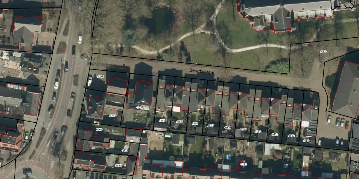 Beatrixstraat 6 is gelegen op kadastraal perceel BHM00B4655. Deze kadastrale aanduiding is uniek en wordt gebruikt door het Kadaster om eigendomsrechten en andere zakelijke rechten vast te leggen. Het perceel maakt onderdeel uit van de kadastrale gemeente Berghem.