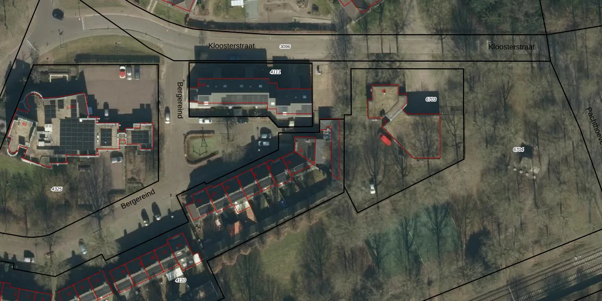 Het perceel waarop Bergereind 40 staat heeft een oppervlakte van 3642 m². Dit is een zeer groot perceel. De perceeloppervlakte wordt geregistreerd door het Kadaster. Gedetailleerde informatie over de maten van dit perceel kunt u vinden in het rapport Kadastrale kaart met maatvoering van Bergereind 40.