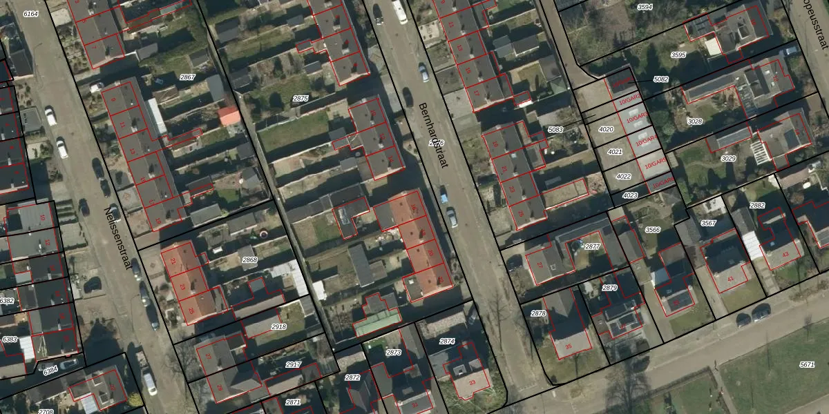 Bernhardstraat 16 is gelegen op kadastraal perceel BHM00B2875. Deze kadastrale aanduiding is uniek en wordt gebruikt door het Kadaster om eigendomsrechten en andere zakelijke rechten vast te leggen. Het perceel maakt onderdeel uit van de kadastrale gemeente Berghem.