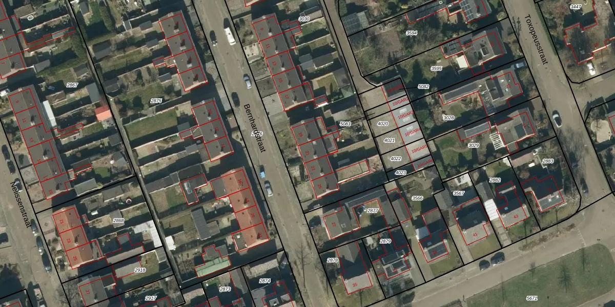 Bernhardstraat 21 is gelegen op kadastraal perceel BHM00B3030. Deze kadastrale aanduiding is uniek en wordt gebruikt door het Kadaster om eigendomsrechten en andere zakelijke rechten vast te leggen. Het perceel maakt onderdeel uit van de kadastrale gemeente Berghem.