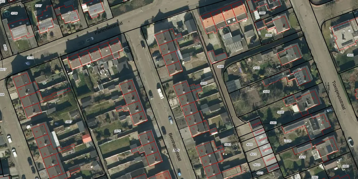 Bernhardstraat 9 is gelegen op kadastraal perceel BHM00B3030. Deze kadastrale aanduiding is uniek en wordt gebruikt door het Kadaster om eigendomsrechten en andere zakelijke rechten vast te leggen. Het perceel maakt onderdeel uit van de kadastrale gemeente Berghem.