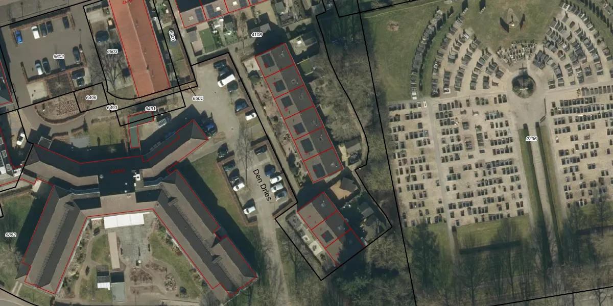Het perceel waarop Den Dries 11 staat heeft een oppervlakte van 3590 m². Dit is een zeer groot perceel. De perceeloppervlakte wordt geregistreerd door het Kadaster. Gedetailleerde informatie over de maten van dit perceel kunt u vinden in het rapport Kadastrale kaart met maatvoering van Den Dries 11.