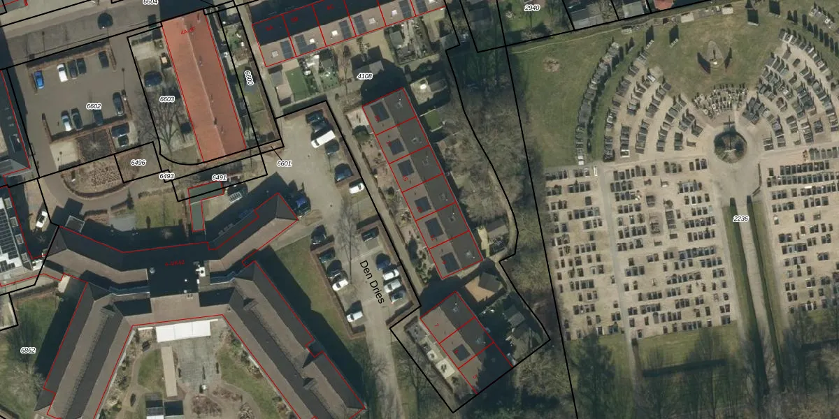 Het perceel waarop Den Dries 13 staat heeft een oppervlakte van 3590 m². Dit is een zeer groot perceel. De perceeloppervlakte wordt geregistreerd door het Kadaster. Gedetailleerde informatie over de maten van dit perceel kunt u vinden in het rapport Kadastrale kaart met maatvoering van Den Dries 13.