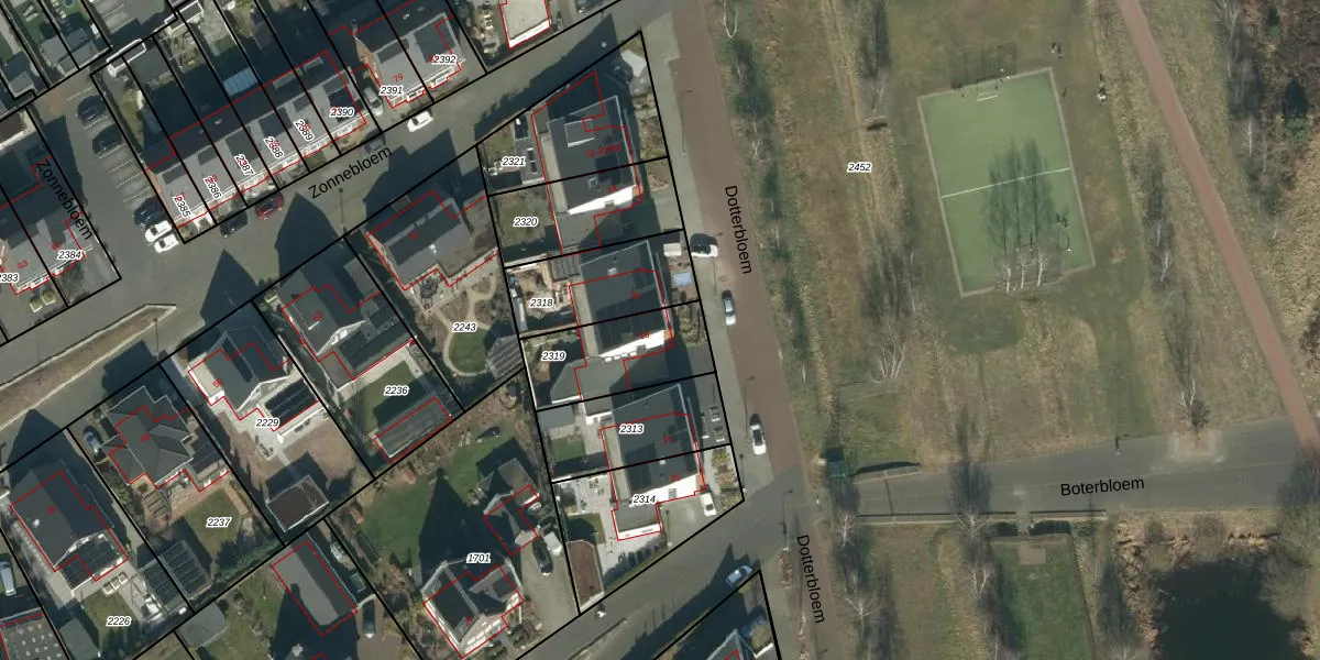 Gebruik de zoekbalk of klik op een perceel voor informatie over de adressen binnen dit perceel.