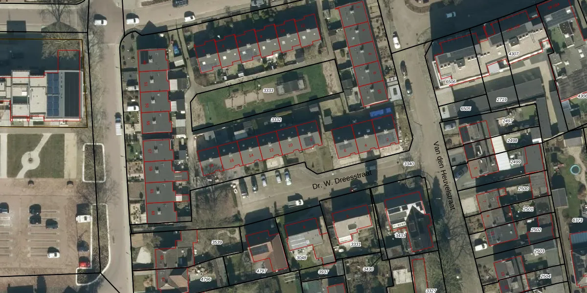Dr. W. Dreesstraat 10 is gelegen op kadastraal perceel BHM00B3332. Deze kadastrale aanduiding is uniek en wordt gebruikt door het Kadaster om eigendomsrechten en andere zakelijke rechten vast te leggen. Het perceel maakt onderdeel uit van de kadastrale gemeente Berghem.