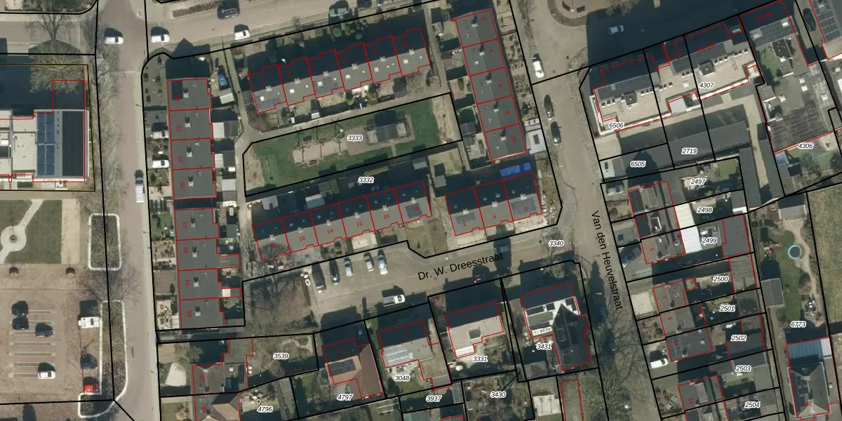Dr. W. Dreesstraat 8 is gelegen op kadastraal perceel BHM00B3332. Deze kadastrale aanduiding is uniek en wordt gebruikt door het Kadaster om eigendomsrechten en andere zakelijke rechten vast te leggen. Het perceel maakt onderdeel uit van de kadastrale gemeente Berghem.