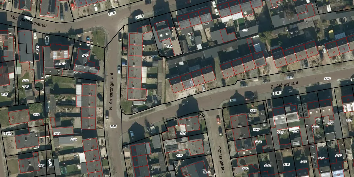 E. Aldrinstraat 1 is gelegen op kadastraal perceel BHM00B5190. Deze kadastrale aanduiding is uniek en wordt gebruikt door het Kadaster om eigendomsrechten en andere zakelijke rechten vast te leggen. Het perceel maakt onderdeel uit van de kadastrale gemeente Berghem.
