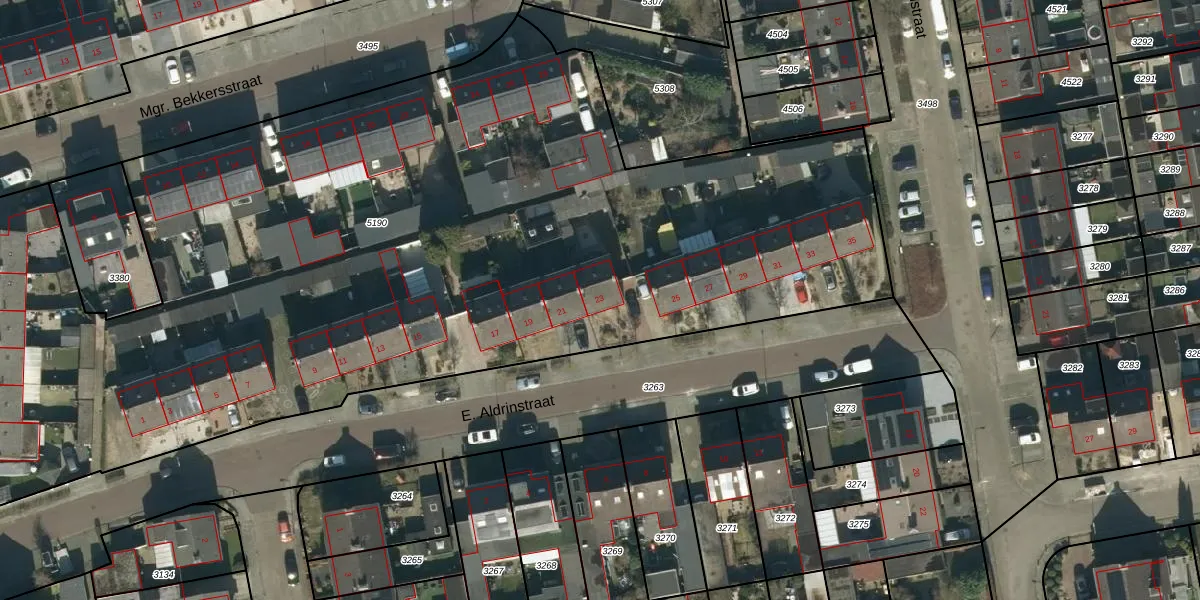 E. Aldrinstraat 23 is gelegen op kadastraal perceel BHM00B5190. Deze kadastrale aanduiding is uniek en wordt gebruikt door het Kadaster om eigendomsrechten en andere zakelijke rechten vast te leggen. Het perceel maakt onderdeel uit van de kadastrale gemeente Berghem.