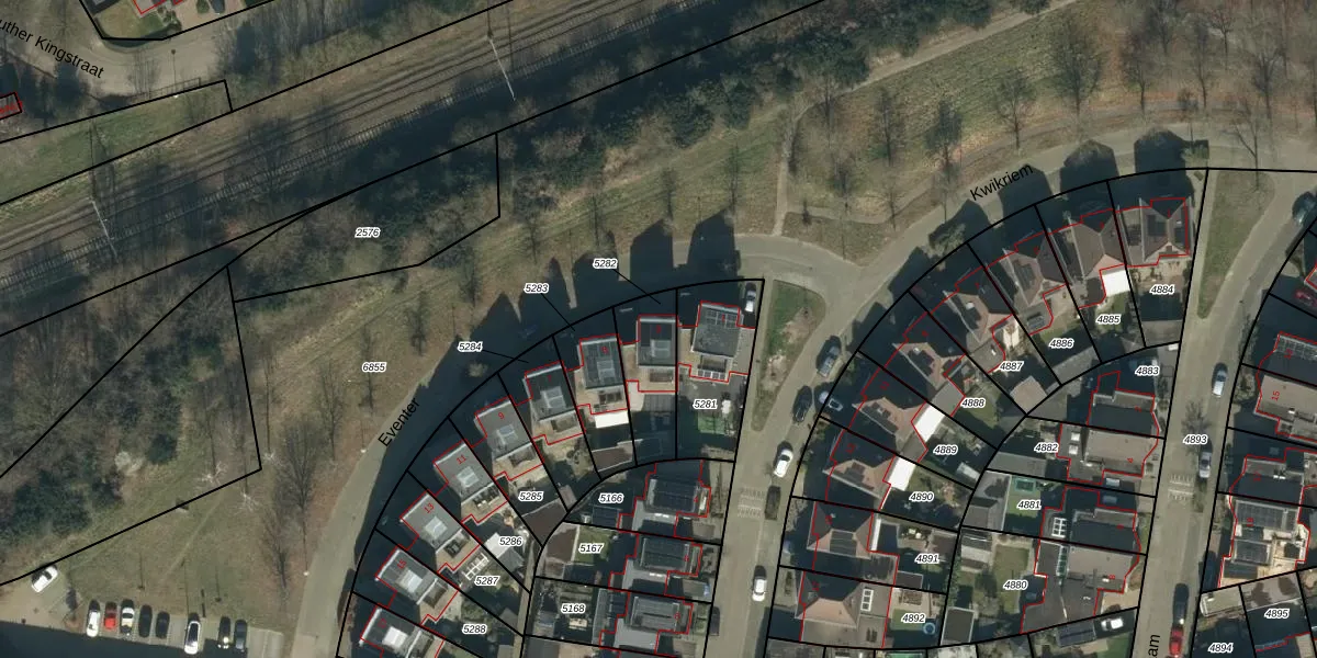 Het perceel waarop Eventer 3 staat heeft een oppervlakte van 201 m². Dit is een middelgroot perceel. De perceeloppervlakte wordt geregistreerd door het Kadaster. Gedetailleerde informatie over de maten van dit perceel kunt u vinden in het rapport Kadastrale kaart met maatvoering van Eventer 3.