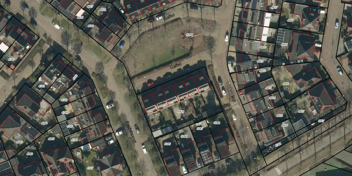 Het perceel waarop Gaffel 8 staat heeft een oppervlakte van 1152 m². Dit is een zeer groot perceel. De perceeloppervlakte wordt geregistreerd door het Kadaster. Gedetailleerde informatie over de maten van dit perceel kunt u vinden in het rapport Kadastrale kaart met maatvoering van Gaffel 8.
